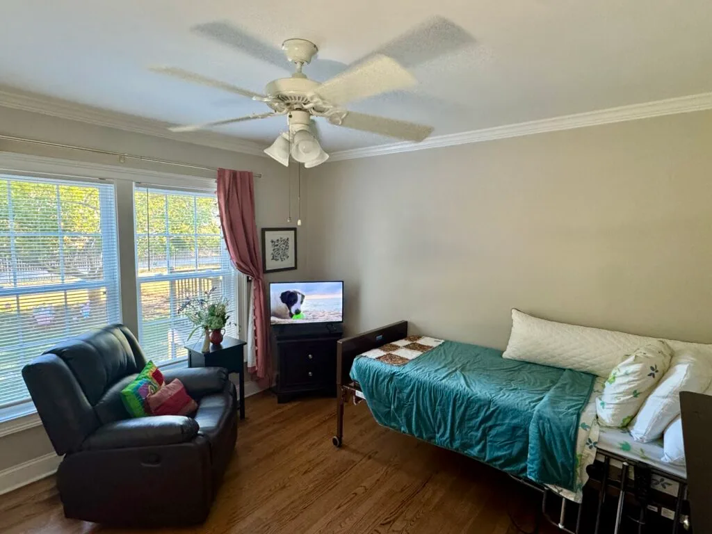 Located in North Raleigh, our senior care home offers a peaceful and picturesque setting, providing an ideal environment for aging loved ones to thrive. With a focus on individualized care and attention, we offer a unique 1:3 staff-to-resident ratio, ensuring that each resident receives the personalized care and attention they deserve. Unlike large, impersonal memory care facilities, our home provides an intimate, nurturing environment where residents feel comfortable, safe, and valued.